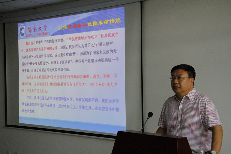 11月22日下午,材料与化工学院院长张玉苍教授在研发中心710会议室为学院全体党员做题为《弘扬革命优良传统,建设优秀海大文化》党课专题教育,学院全体领导、教职工党员和学生党员参加了党课活动。