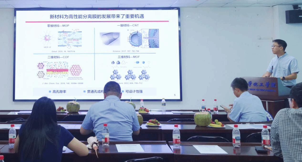 来自郑州大学的王景涛教授介绍了近年来在固态锂电池隔膜开发的研究历程。中山大学的曹发和教授分享了他在腐蚀行为系统研究新范式构建中的心得。中国科学院过程工程研究所的谢勇冰研究员介绍了他在工业废水有机污染物高级氧化降解中的研究成果。南京工业大学的储震宇教授分享了他在用于血指标动态监测的分离传感膜构筑方面取得的研究成果。北京工业大学的王乃鑫教授介绍了高通量的有机溶剂分离膜开发的最新成果。参会师生与各位专家进行了积极的互动交流。