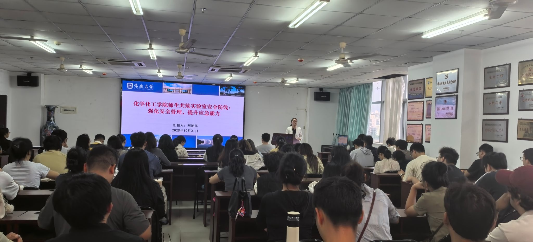 以“共筑实验室安全防线:强化安全管理,提升应急能力”为主题举办了专题培训。本次培训由学院副院长刘艳凤主讲,全院约150名师生积极参与,实验室与设备管理处全程提供专业指导与技术支持。