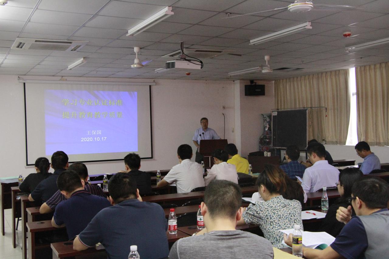10月17日,周六,化学工程与技术学院的全体教职人员没有正常休息,在学校研发中心楼的710会议室正认真的参加学习培训。为进一步的提升学院教职工的对专业工程认证的技能,学院专门聘请了南方科技大学实验室工作部的专家来学院传授指导化工专业工程认证相关知识。