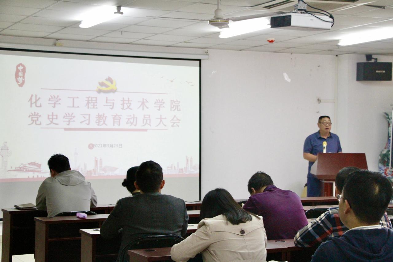 3月23日下午,在研发中心楼710大会议室,化学工程与技术学院召开全体教职工大会部署动员党史学习教育。党委书记冯广波首先传达了党中央、海南省委及学校党委关于开展党史学习教育的主要精神,布置了学院开展党史学习教育的主要工作步骤、方法、措施等。他要求全体中层干部、全体党员包括每位教职员工都要从爱党爱国爱人民的基本点出发,学党史、悟思想、办实事、开新局,在教学科研中学史明理、学史增信、学史崇德、学史力行,不断树牢增强立德树人的意识,为学院建设发展,为学校争取“双一流”作出自己最大的贡献。各分管领导也结合党史学习教育对各项工作进行了布置。