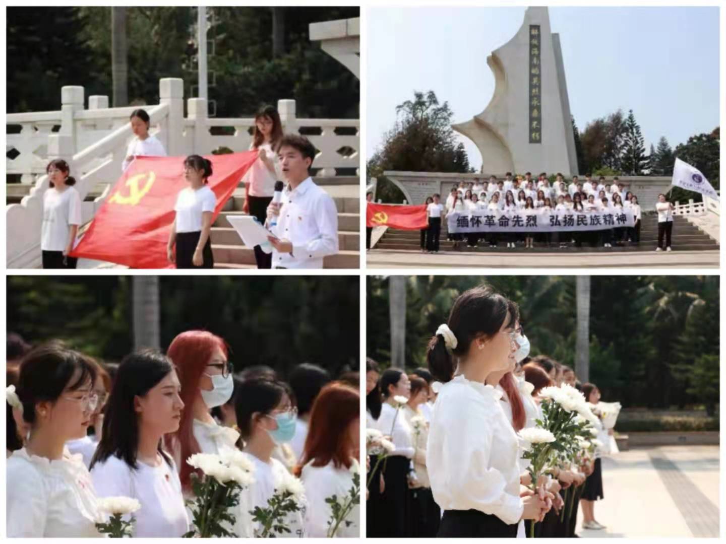 首先主持人付玲颖同志对烈士陵园的相关情况和烈士们的英勇事迹进行了介绍,凝视着纪念碑,革命先烈们为了民族独立和国家尊严献出了宝贵生命的画面仿佛近在眼前。随后大家在雕刻有渡海部队、琼崖纵队解放海南英勇作战的场景和简介的纪念碑前庄重默哀一分钟。