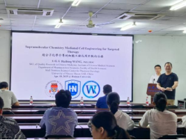 王教授进一步指出,超分子化学与细胞工程化的深度融合推动了基础研究的范式革新。他同时介绍了澳门及澳门大学的一些基本情况,欢迎大家前往交流。王教授的报告内容前沿、逻辑严谨,展现了超分子化学在精准医疗中的巨大潜力。王教授严谨的学术思维与前瞻性的研究视野为现场师生提供了深刻启示。
