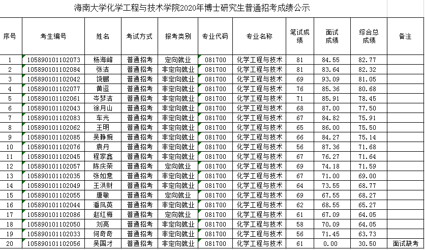日本五级片 化学工程与技术学院2020年博士研究生普通招考成绩公示