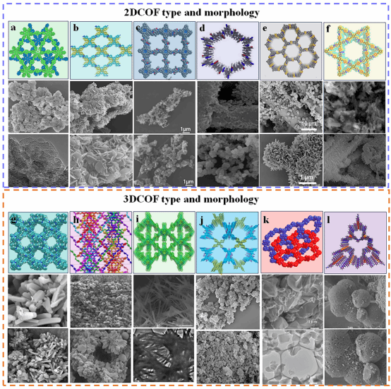 图1 二维 COF 和三维 COF 的类型和形状。