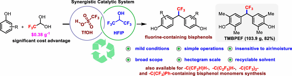 进展二:含氟双酚单体的绿色、规模化和低成本合成