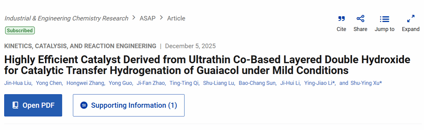近日,化工三大刊之一 Industrial & Engineering Chemistry Research(IECR) 在线发表题为 “Highly Efficient Catalyst Derived from Ultrathin Co-Based Layered Double Hydroxide for Catalytic Transfer Hydrogenation of Guaiacol under Mild Conditions” 的研究论文。日本五级片