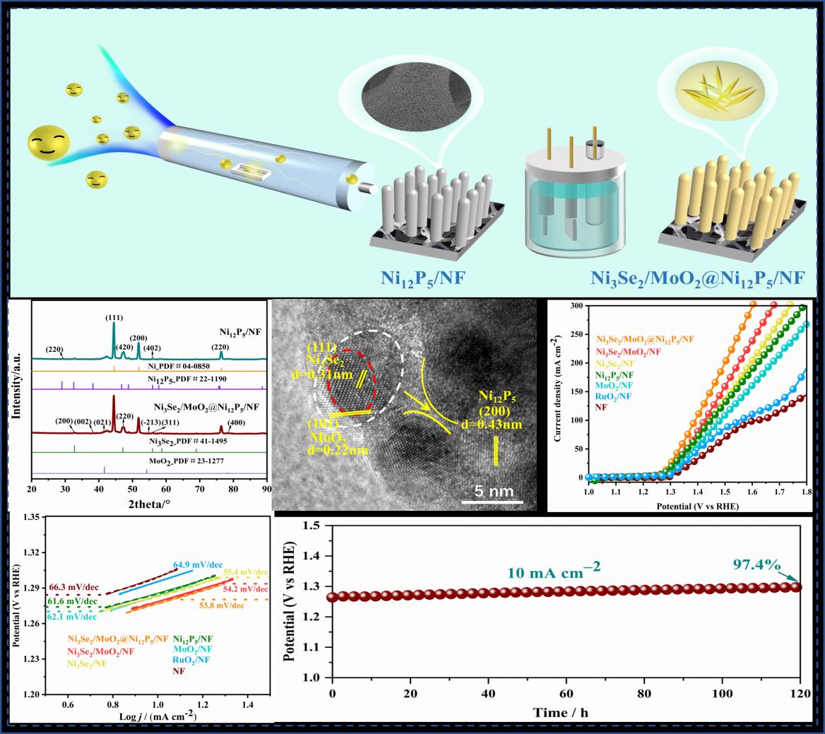 近日,田新龙教授团队在物理化学领域Top期刊《MaterialsToday Physics》(IF=9.29)发表研究论文,论文题目为“Heterogeneous structured Ni3Se2/MoO2@Ni12P5catalyst for durable urea oxidation reaction”。科研助理封苏阳为第一作者,李静讲师、田新龙教授为共同通讯作者。