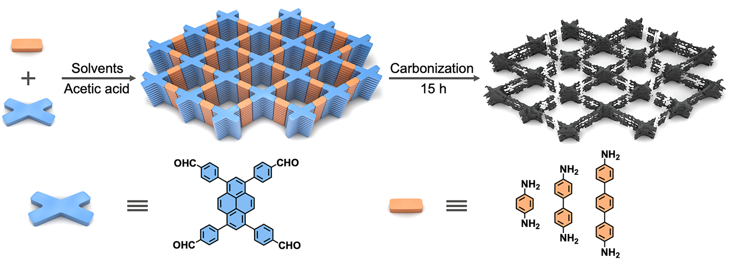 1.共价有机框架衍生多孔有机材料的合成示意图。
