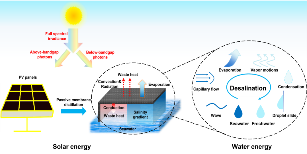 淡水和能源的稀缺以及环境污染已成为威胁人类生存的重大挑战,特别是对于贫困、干旱和离网地区。然而,水和能源过去通常是作为两个相互独立系统和两个独立问题被研究和规划,这使得很难实现淡水和能源的同步可持续供应。因此,迫切需要探索环境友好技术来同时缓解淡水和能源短缺问题。近日,南海海洋动力资源方向黄玮副研究员团队基于光热界面蒸发技术综述了一系列杂化水-电联产系统并系统阐述水-能综合利用关系。