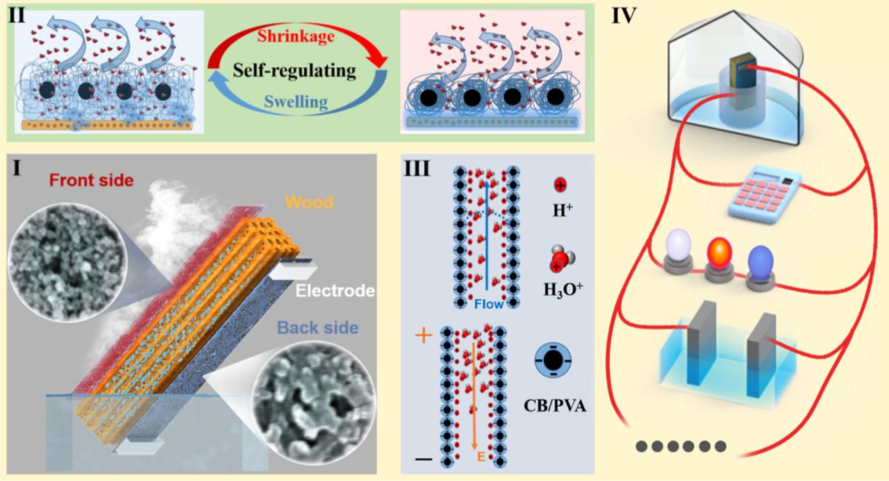 水蒸发在自然界无处不在,其中伴随着水伏发电效应。然而,水管理性能的差异导致构建既能高效蒸发又能稳定输出电能的蒸发系统仍然是巨大挑战。本文报道了一种夹层膜策略,通过在薄木片的两个相对侧涂覆两种具有不同通道结构和吸水率的炭黑(CB)/聚乙烯醇(PVA)功能膜,构建用于高效串联太阳能水-电联产的三维不对称蒸发器。该器件实现了1.93 kg m-2h-1的高蒸发速率,且几个蒸发单元简单的串/并联即可为商用计算器供电,电解亚甲蓝溶液,并点亮发光二极管。该工作是领域内最早提出水-盐联产设想的报道之一。(Nano Energy, 2021, 86, 106112)