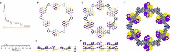 图4. [7]Helicene sp2c-COF-1的PXRD及晶体结构示意图。