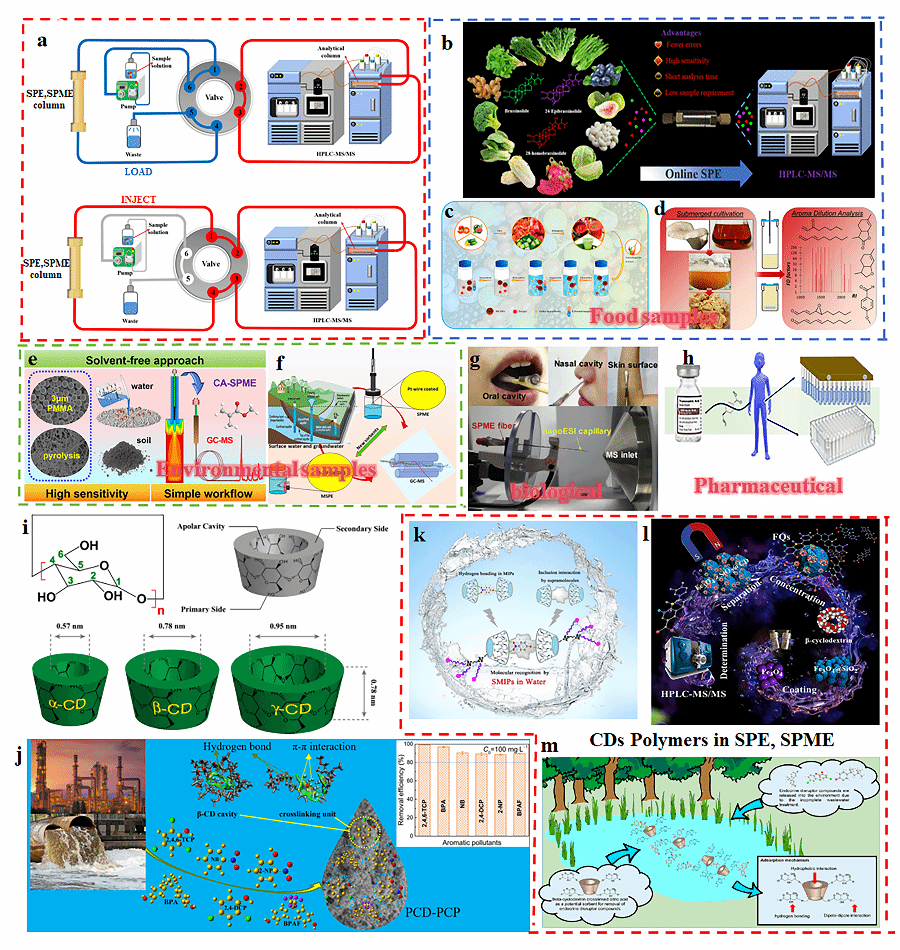 目前,在分析化学领域,样品预处理对于精准检测至关重要,但传统技术存在诸多不足。环糊精聚合物因内部疏水、外部亲水的特殊结构,在固相(微)萃取方面具备独特优势。该研究全面介绍了环糊精聚合物的多种合成方法,如交联聚合、接枝、自组装、分子印迹和环糊精微孔有机网络等。同时,深入阐述了其吸附机理,发现它主要通过静电相互作用、主客体相互作用、氢键相互作用以及孔隙吸附等多种方式来实现对目标物质的捕获。此外,该研究还系统总结了环糊精聚合物在食品、环境和生物样品固相(微)萃取中的应用。虽然目前环糊精聚合物在实际应用中面临稳定性、溶剂耐受性和易用性等挑战,但该综述对其未来发展进行了展望,提出应深入探索吸附机制、设计绿色低成本制备方法以及提高聚合物的选择性和特异性等,为后续相关研究提供了极具价值的参考。