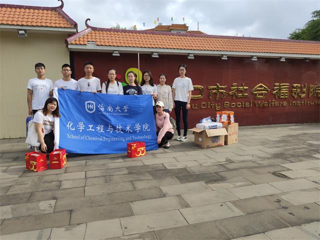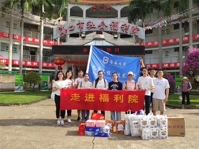 化学工程与技术学院专业型研究生党支部的党员同志们走进了位于海甸岛三西路的海口市社会福利院,这个周六是社会福利院的爱心开放日,党员同志们来到福利院送出爱心,做出服务。
